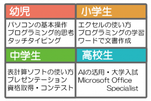 PC-ICT教室のバレッドキッズでは、幼児から高校生までご入会できます。